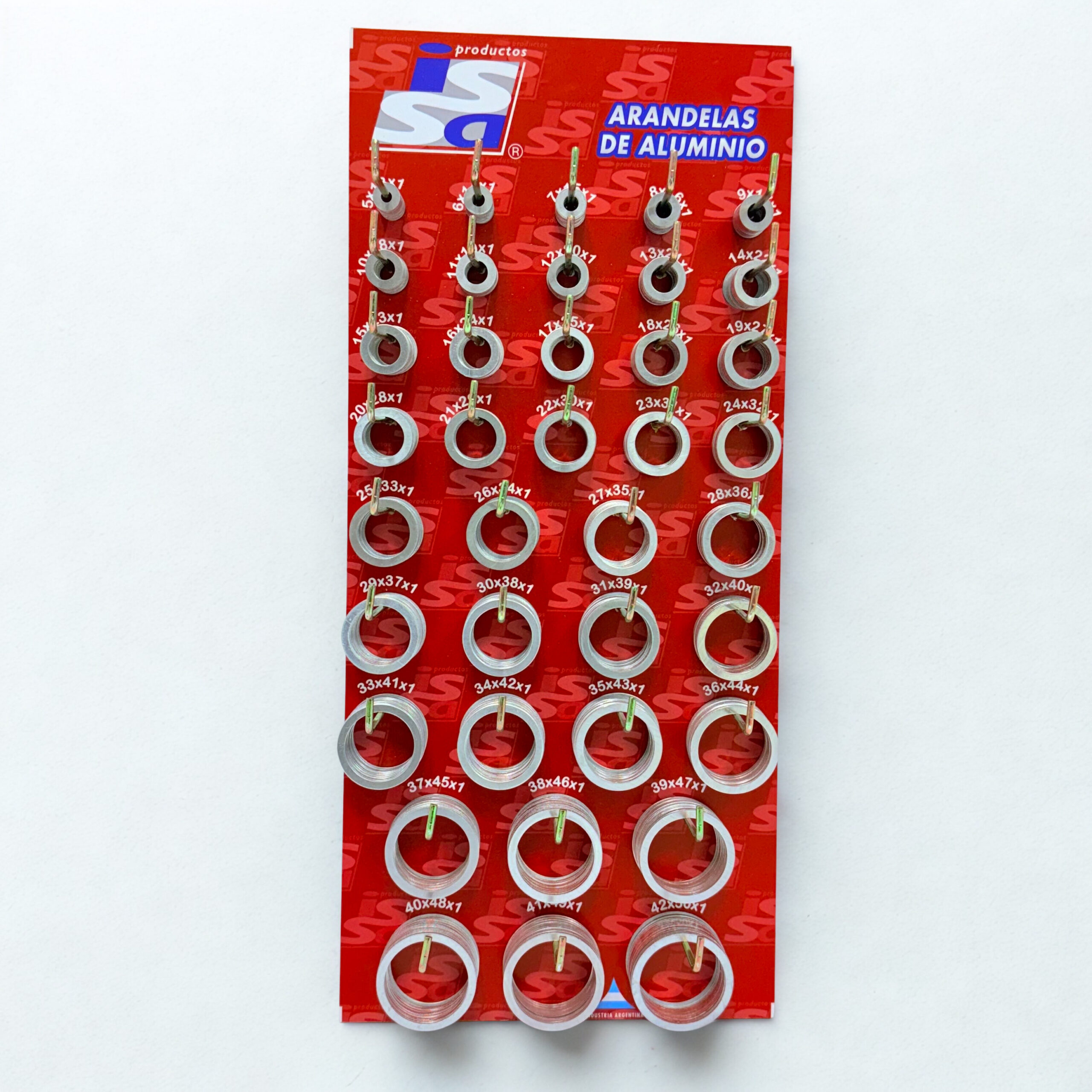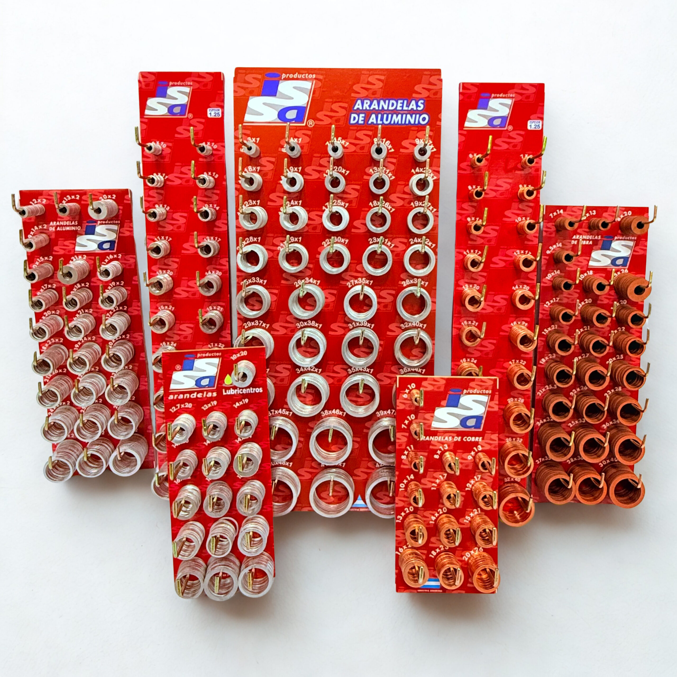 producidas en materiales no ferrosos, tales como aluminio, cobre o fibra, se utilizan como sellos o juntas entre partes donde fluyen líquidos o gases.