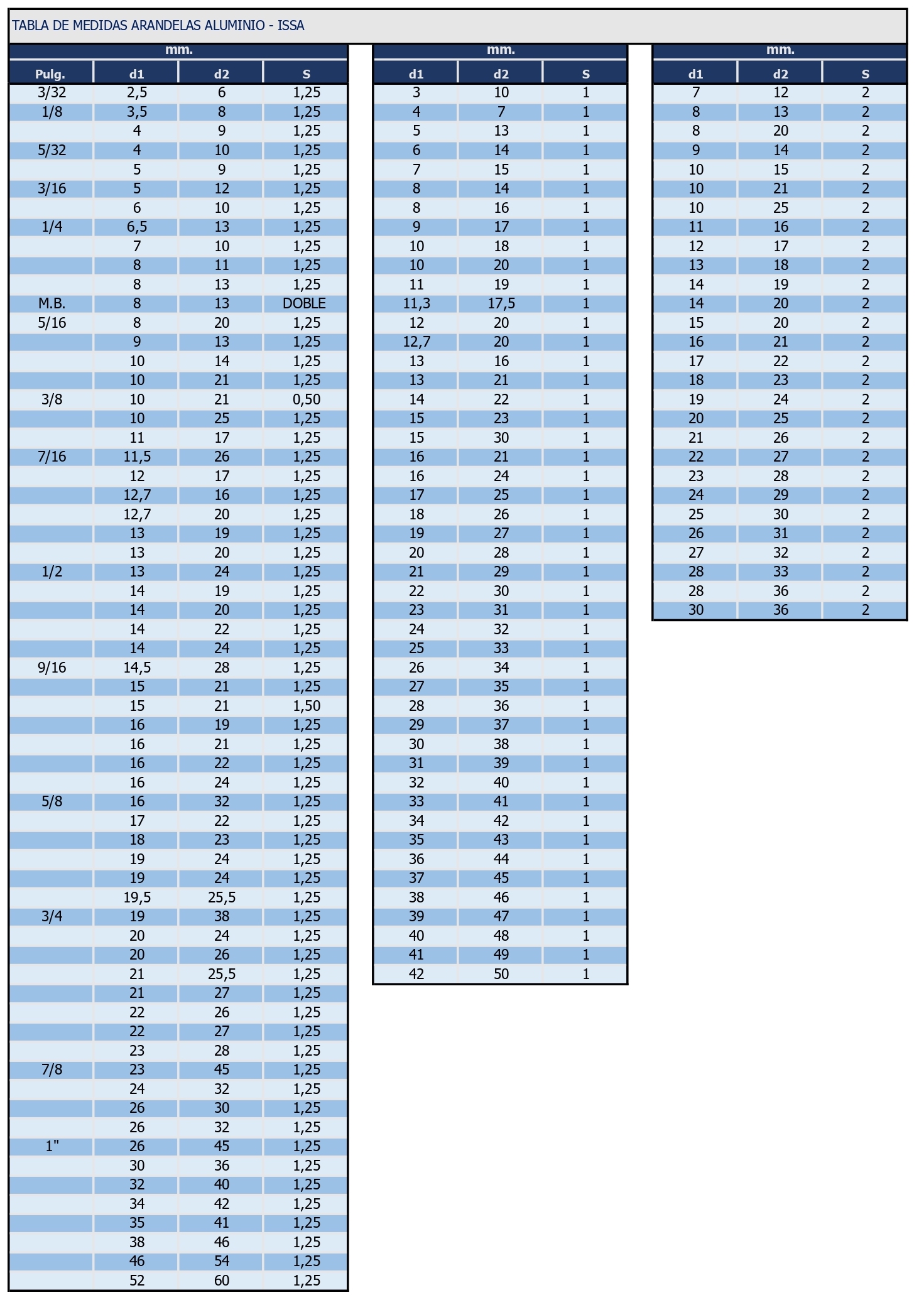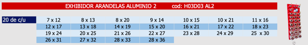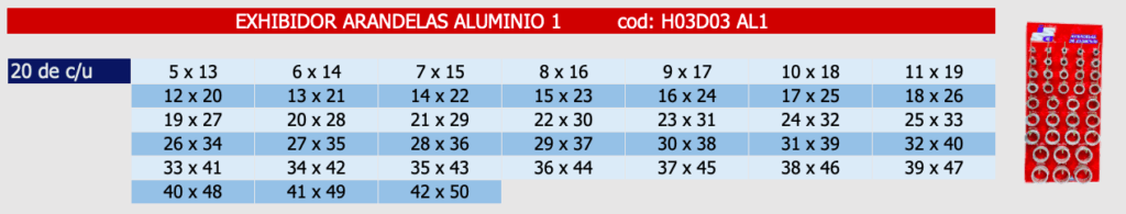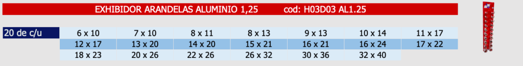 Si bien existe una línea standard que se encuentra en los negocios del ramo, sobre pedido se pueden fabricar las arandelas