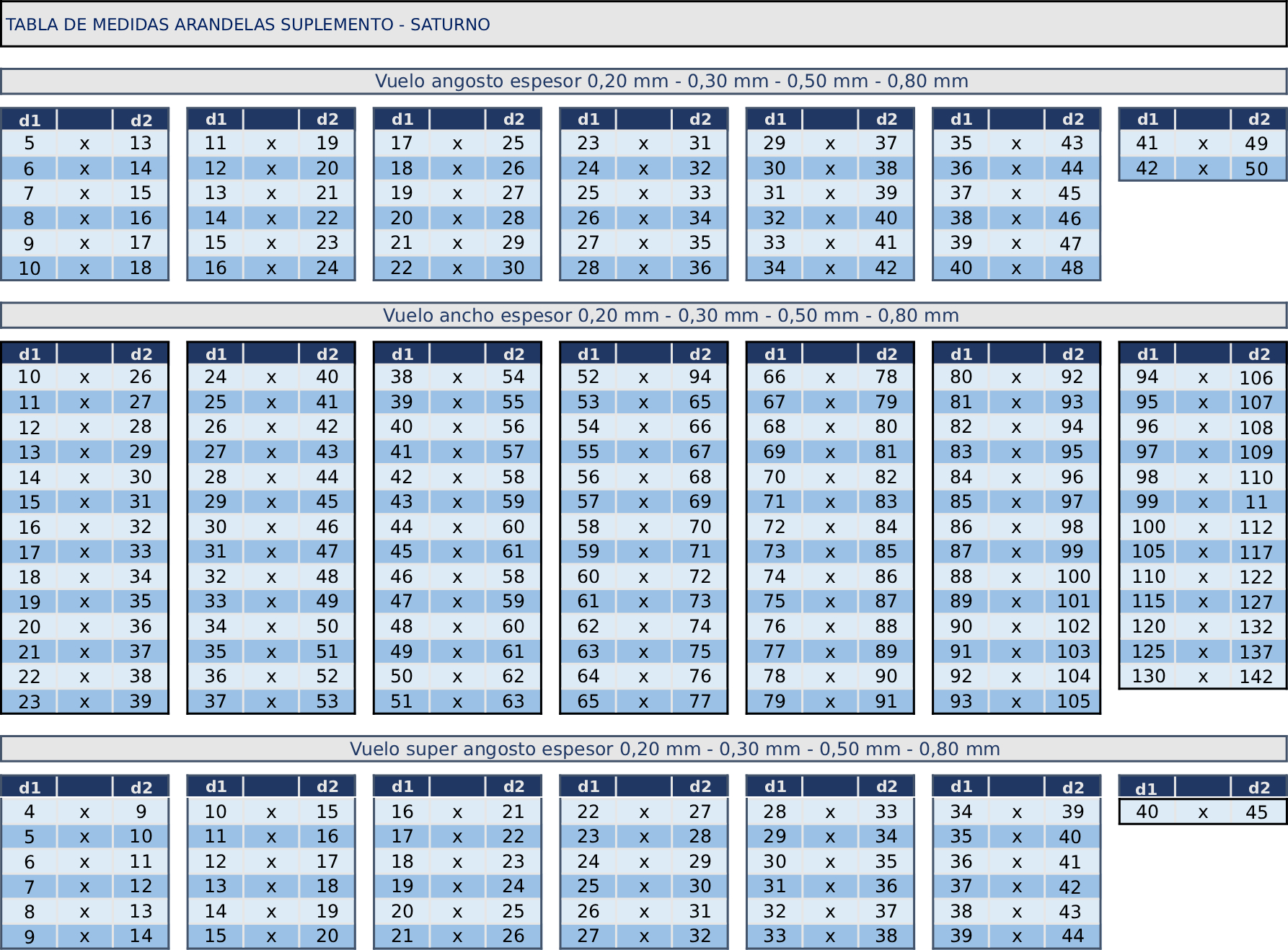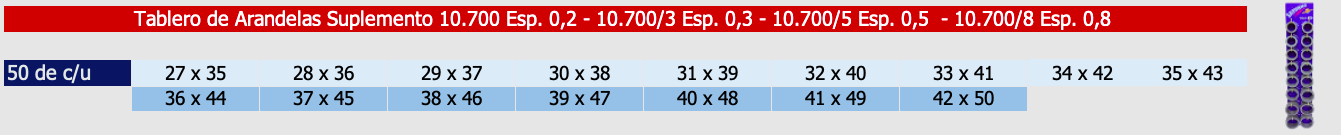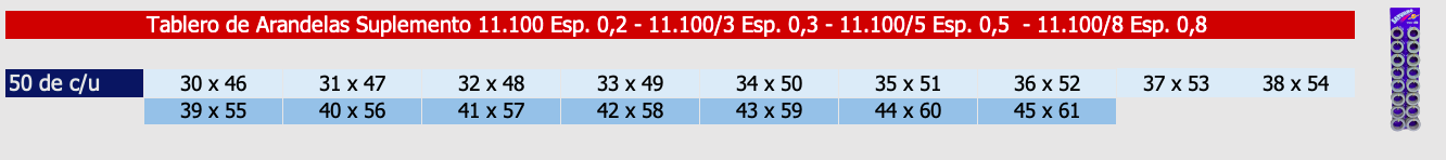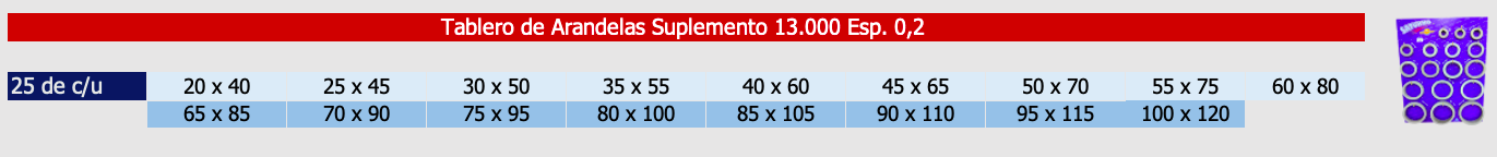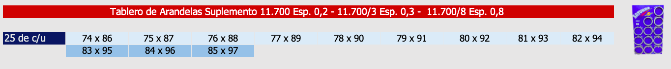 Sobre pedidos, se pueden fabricar en otros espesores y diámetros que no figuran en la tabla de medidas.