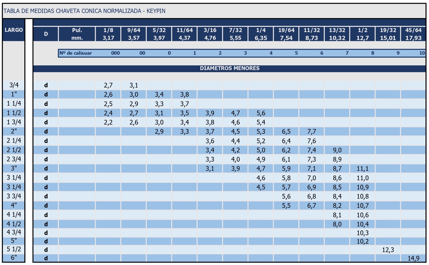Chavetas Cónicas Pulgadas - Normalizadas - Keypin