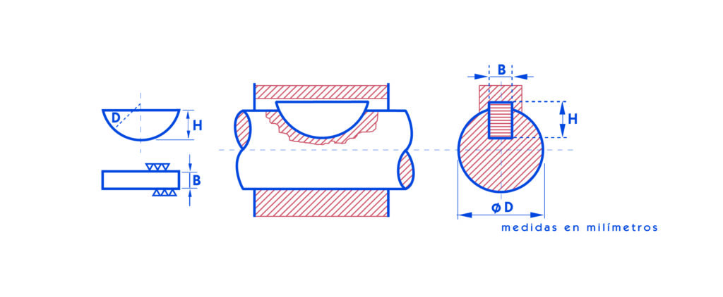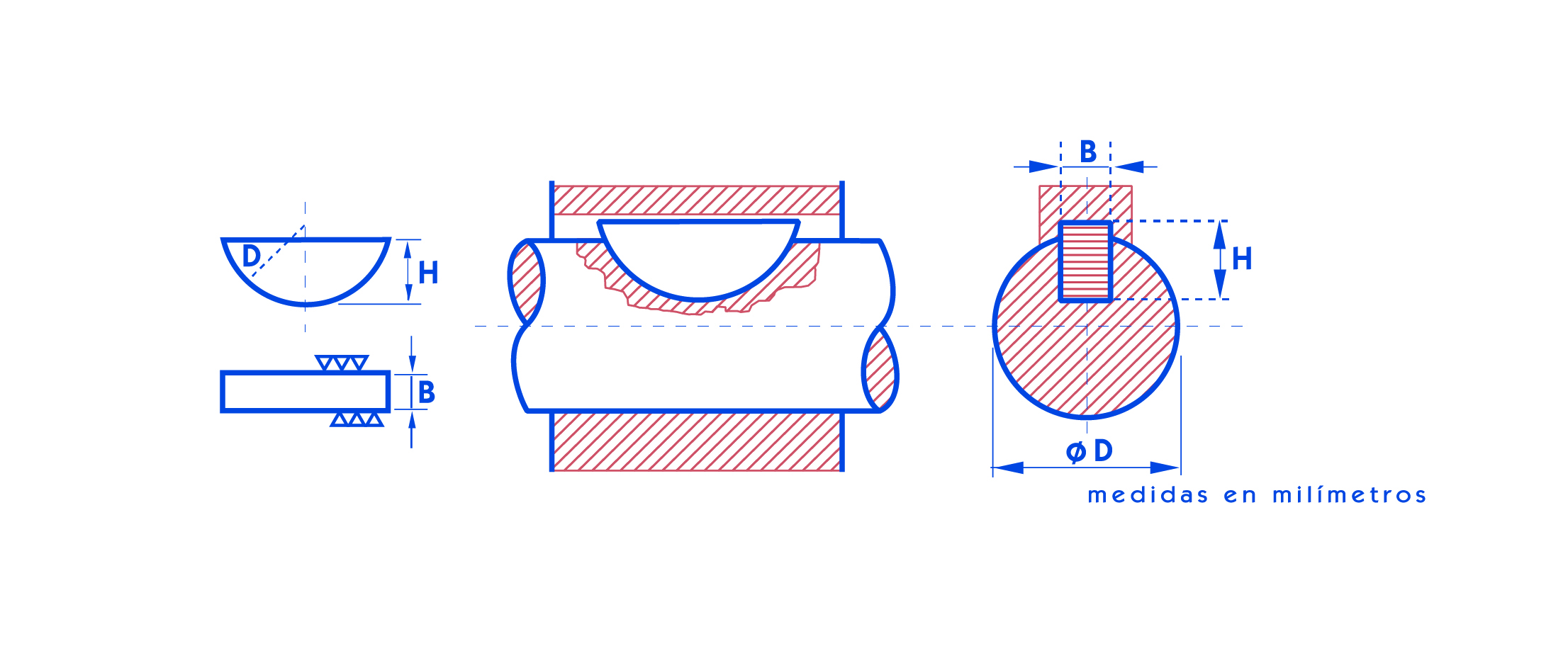 Las Chavetas Media Luna  son cuerpos macizos de acero, utilizadas para fijar en un eje engranajes, poleas, piñones, levas, ruedas etc.