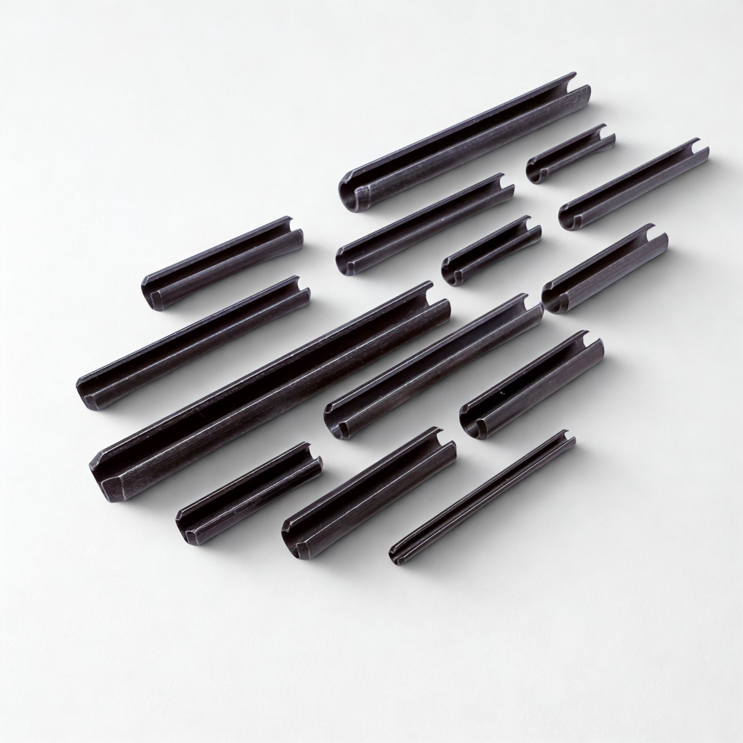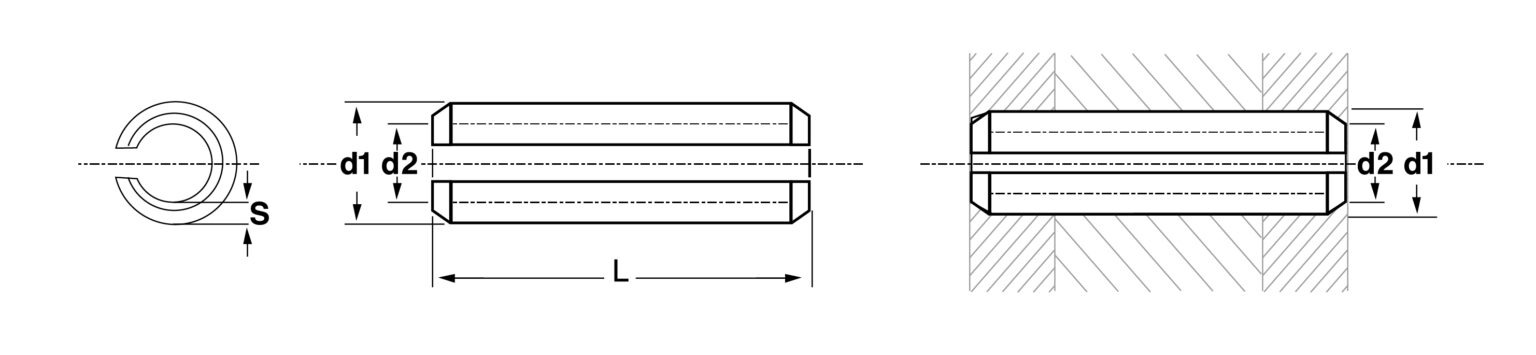 son cuerpos cilíndricos huecos, que longitudinalmente tienen una ranura de un extremo a otro y un chaflán en uno o en los dos extremos (según el diámetro nominal) para facilitar el alojamiento en las partes a fijar. Antes de ser alojadas las espinas elásticas