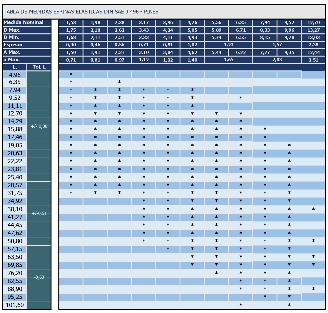 Espinas Elásticas SAE J496 – PINES