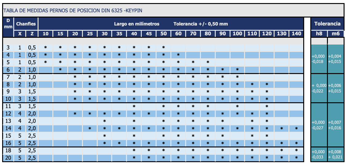 Pernos de Posición DIN 6325 M6 – H8 – KEYPIN